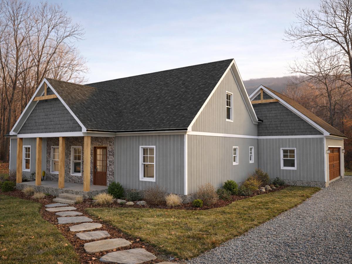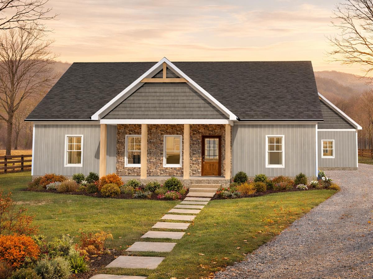 This thoughtfully designed home blends modern comfort with timeless charm. Featuring an open-concept great room, spacious kitchen with island, and inviting dining area, it’s perfect for everyday living and entertaining. The private primary suite offers a relaxing retreat, while additional bedrooms provide flexibility for family or guests. A large storage space upstairs adds an opportunity for a future finished bonus space, and the connected garage and mudroom enhance convenience. Classic exterior details and a welcoming porch complete this beautifully balanced home.